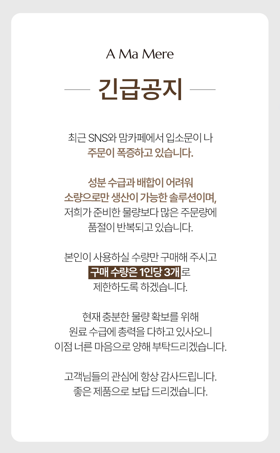 1. 아마메르 공식 홈페이지 회원 혜택으로 공식몰(www.amamere.co.kr)에서 구매한 경우에만 적용됩니다.