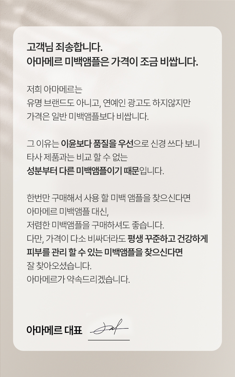 아마메르는 당신의 피부 고민을 위한 단 하나의 해답을 함께 찾아갑니다.